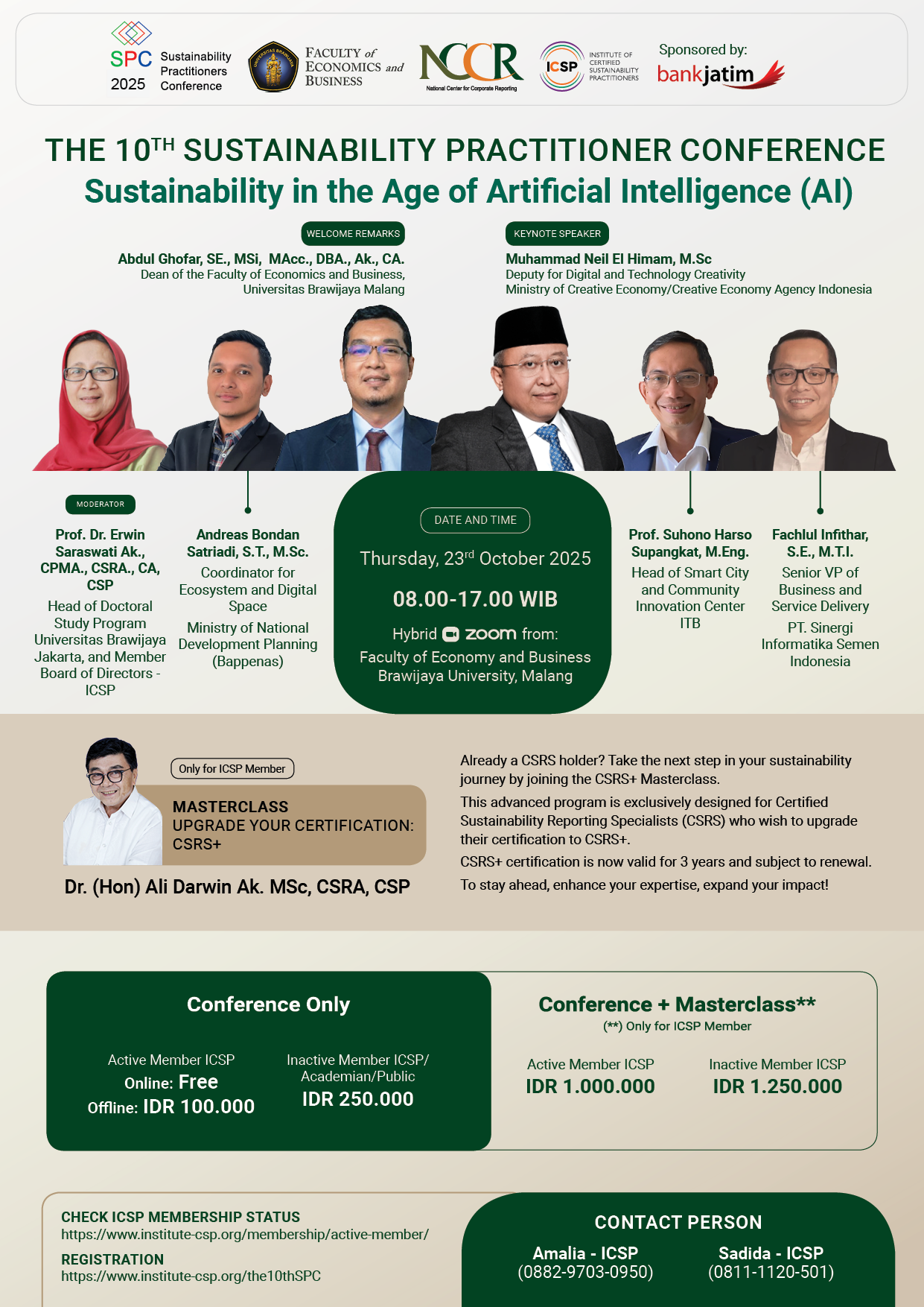 Head of Doctoral Study Program Universitas Brawijaya Jakarta, and Member Board of Directors – ICSP